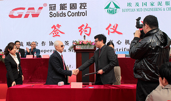 2015年3月12日,冠能固控埃及國家泥服公司在中國北京冠能公司總部簽署戰(zhàn)略合作協(xié)議,為此冠能固控舉辦了盛大了簽約儀式,儀式也包括了一大批離心機(jī)的成功交付。