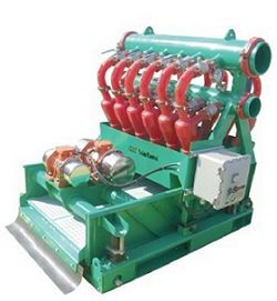安裝與調(diào)試;以河北冠能石油機械制造有限公司的GNZJ752-12N鉆井液除泥清潔器為主。 安裝:司鉆組織鉆工完成。 將除泥器放到2#罐的除泥倉的罐面,除泥器的振動篩排砂口應(yīng)突出罐邊50-80mm。 連接所有法蘭,中間加上密封圈,用螺栓緊固。 電氣師連接并固定好砂泵和振動篩電機電源線,電氣系統(tǒng)均要防爆。 電纜盡量穿過防爆管,防止泥漿蒸汽腐蝕。 調(diào)試:電氣師 檢查除泥器電機接地完好。 啟動振動篩電機,調(diào)試電機轉(zhuǎn)向與其護罩上的箭頭方向一致,否則振動篩不能排砂。 使用:鉆井液工 啟動時先啟動小振動篩,再檢查閘門,然后啟動砂泵。 停止時先關(guān)閉砂泵,然后沖洗小振動篩,后停小振動篩。 操作:鉆井液工 調(diào)整旋流器底流螺母,使其底流呈傘狀噴射排出。 停用時,應(yīng)徹底放凈旋流器內(nèi)的泥漿防止凝固或結(jié)冰。將篩網(wǎng)沖洗干凈, 檢查各部位是否有異常。 嚴禁用鐵掀拍打篩網(wǎng),或用其它硬物刷刮篩面,以確保篩網(wǎng)的使用壽命。 更換篩網(wǎng)時,篩架上橡膠墊應(yīng)安裝齊全,篩網(wǎng)不許出現(xiàn)歪扭和松緊不均等 現(xiàn)象,保證篩網(wǎng)平整。 拆卸:與安裝順序相反。置于平坦地面待運。附件可置于罐內(nèi),綁扎好。 檢查和保養(yǎng):鉆井液工 檢查 查看壓力表壓力是否在工作壓力范圍內(nèi);壓力表如有損壞或指針不動應(yīng)及 時更換;壓力表進液口的濾網(wǎng)如有損壞或堵塞應(yīng)及時更換或清洗。 激振電機運轉(zhuǎn)累計100小時,為初運轉(zhuǎn)期,在初運轉(zhuǎn)期內(nèi),每班應(yīng)檢查連 接螺栓并進行緊固。 應(yīng)經(jīng)常檢查兩邊激振器外殼溫度。激振電機運轉(zhuǎn)累計5000小時,應(yīng)對軸承進行檢查,若已損傷或軸承壽命 到期,應(yīng)更換軸承并加滿潤滑脂。如果發(fā)現(xiàn)兩端的激振力不一致時可拆開兩端,把兩端的激振塊調(diào)為一致。 保養(yǎng):機械師指導鉆井液工完成。 一般在運轉(zhuǎn)500小時左右應(yīng)補充潤滑脂,若發(fā)現(xiàn)潤滑脂變質(zhì)時,應(yīng)及時更換。